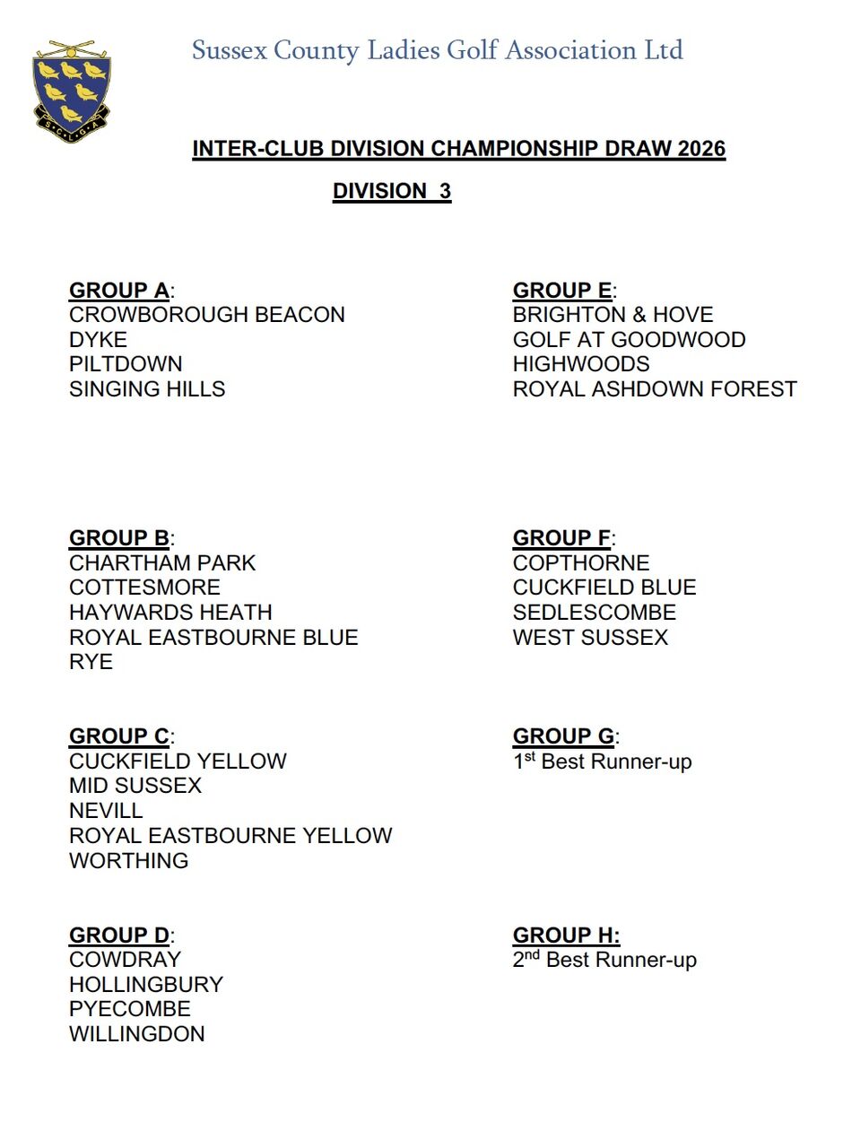 Division 3 – no player under 20.1 handicap index (no maximum). All matches will be played off scratch.